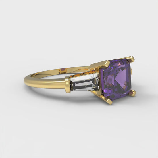 1.62 cttw Natural Amethyst Three-Stone Engagement Ring - Solid Gold (Square Emerald Cut,6.5X6.5mm)