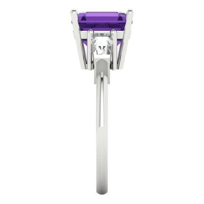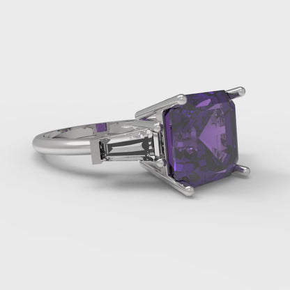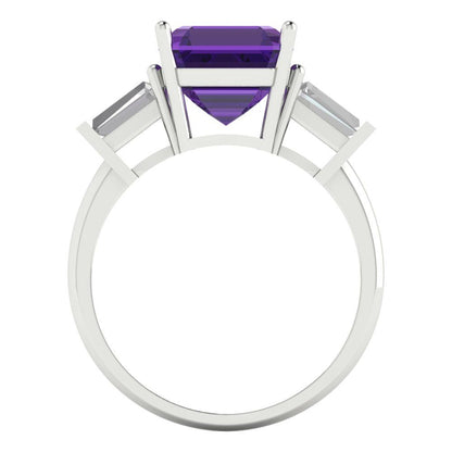 3 cttw Natural Amethyst Three-Stone Engagement Ring - Solid Gold (Asscher Cut,8.0mm)