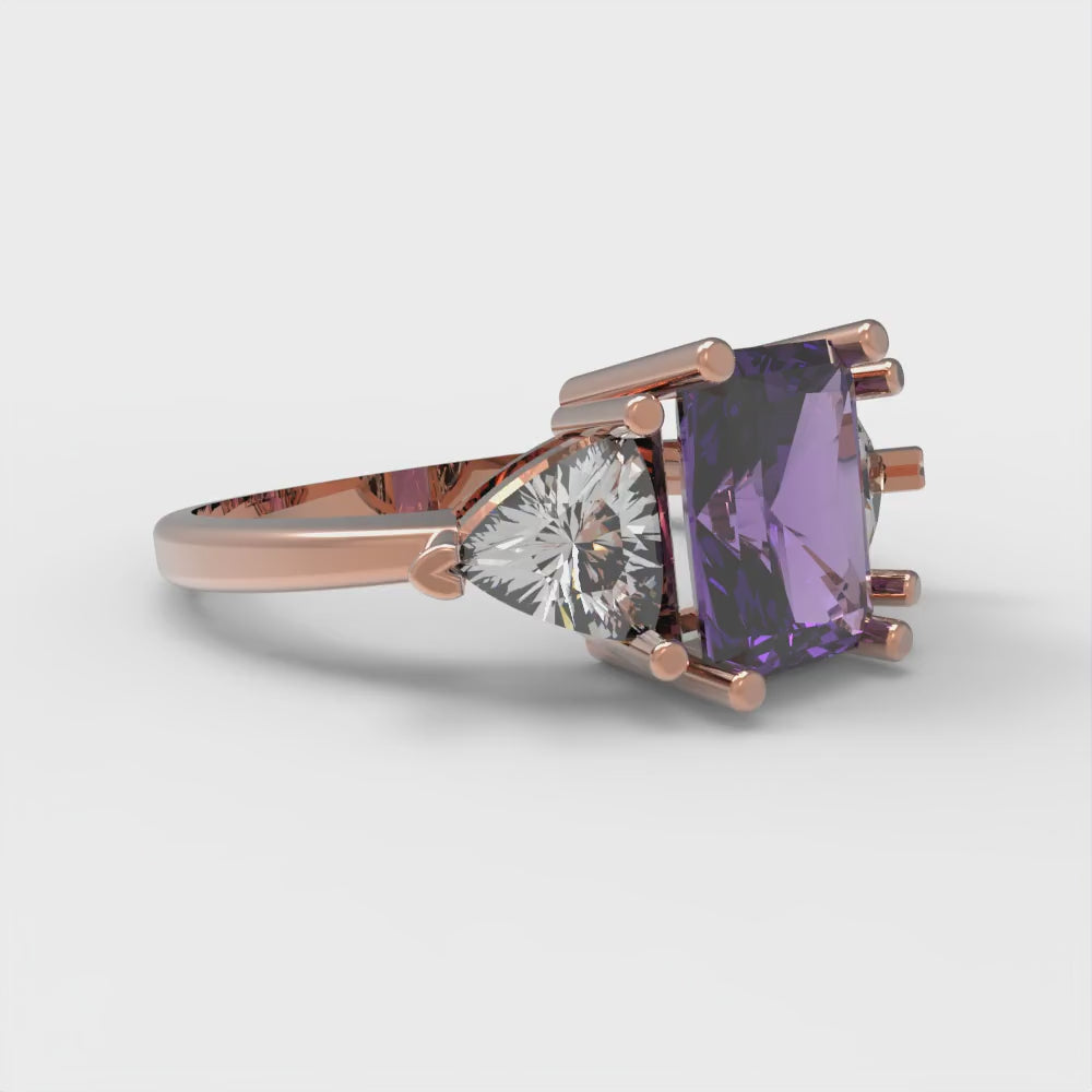 2.82 cttw Natural Amethyst Three-Stone Engagement Ring - Solid Gold (Emerald Cut,8x6mm)