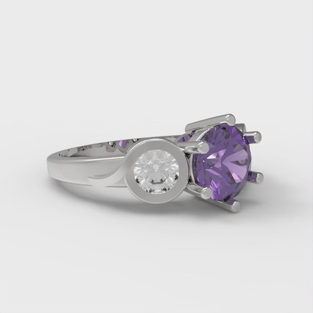 1.72 cttw Natural Amethyst Three-Stone Engagement Ring - Solid Gold (Round Cut,6.5mm)