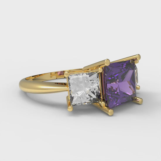 2.5 cttw Natural Amethyst Three-Stone Engagement Ring - Solid Gold (Princess Cut,6.5 mm)
