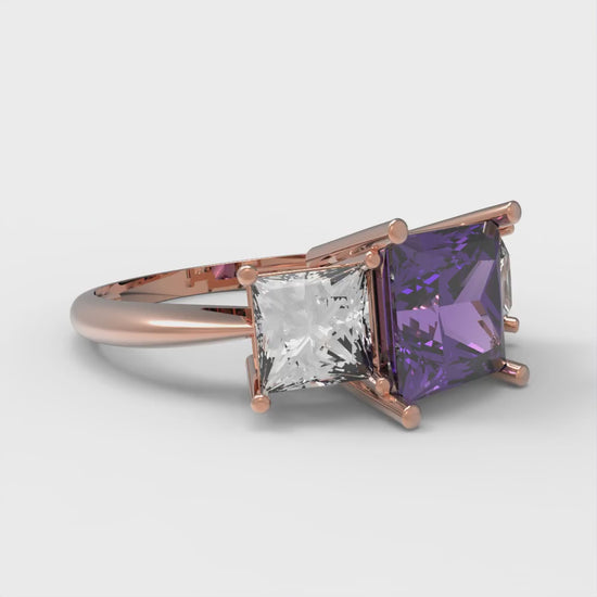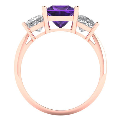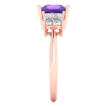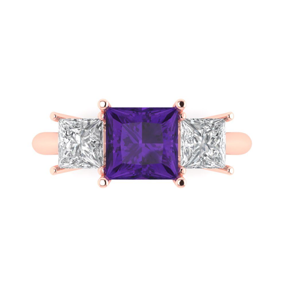 2.5 cttw Natural Amethyst Three-Stone Engagement Ring - Solid Gold (Princess Cut,6.5 mm)
