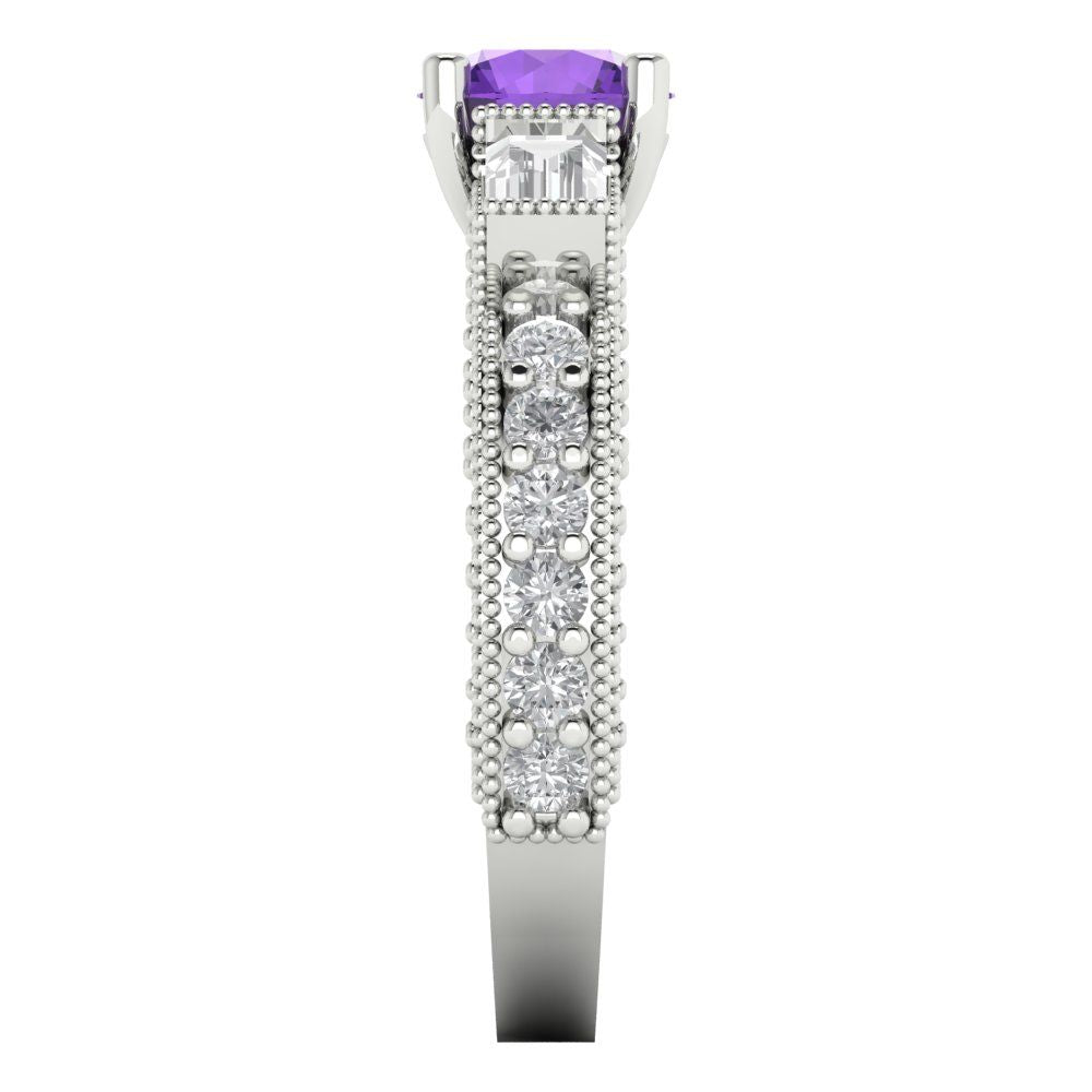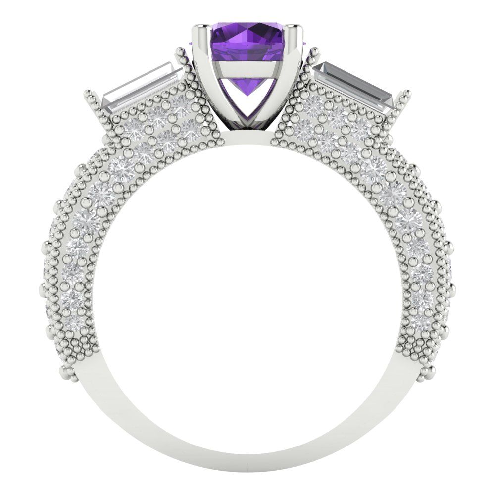2.33 cttw Natural Amethyst Three-Stone Engagement Ring - Solid Gold (Round Cut,6.5mm)