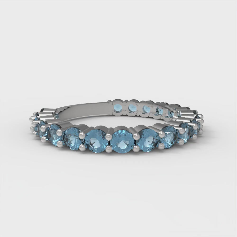 1.2 cttw Natural Aquamarine Round Cut White Gold Eternity Wedding Band
