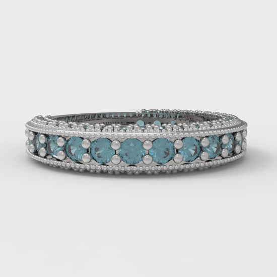 1.44 cttw Natural Aquamarine Round Cut White Gold Eternity Wedding Band