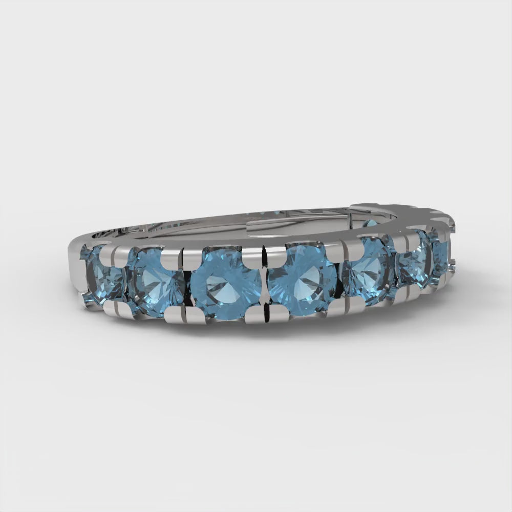 1 cttw Natural Aquamarine Round Cut White Gold Eternity Wedding Band