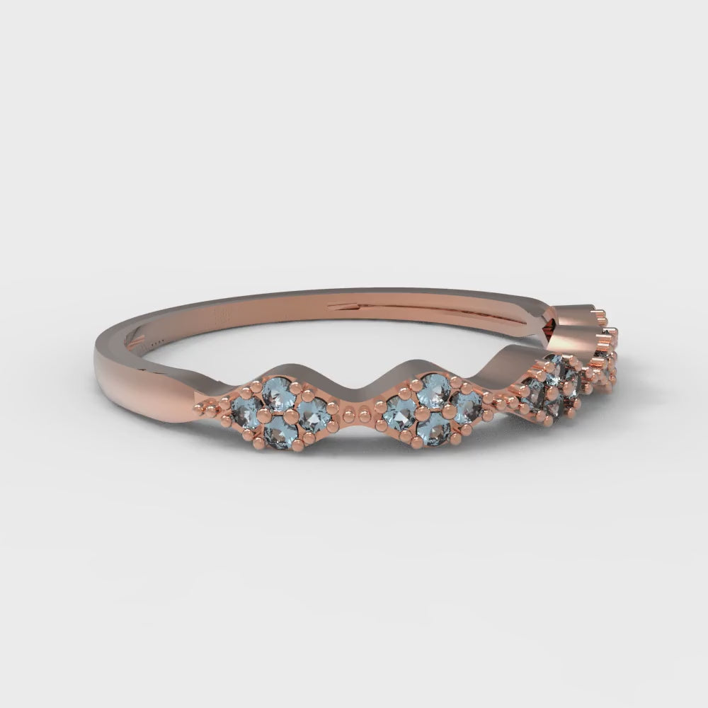 0.1 cttw Natural Aquamarine Round Cut Rose Gold Eternity Wedding Band