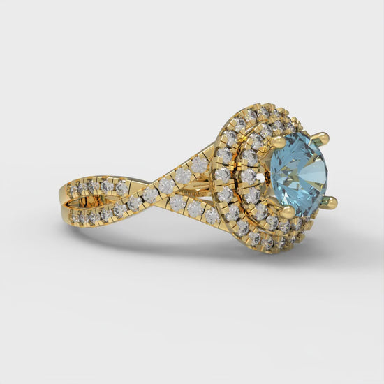 1.3125 cttw Natural Aquamarine Hidden Halo Engagement Ring - Solid Gold (Round Cut,6mm)
