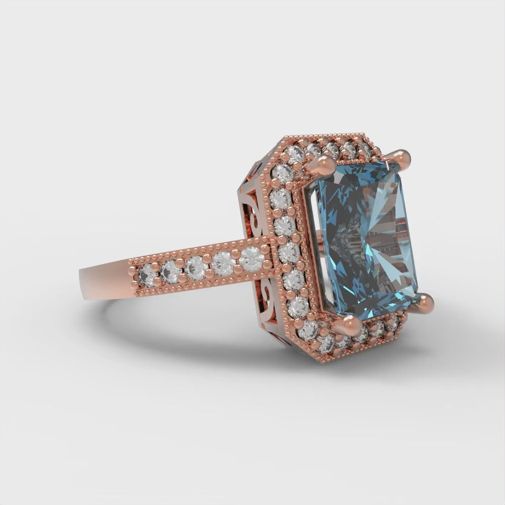 2.78 cttw Natural Aquamarine Hidden Halo Engagement Ring - Solid Gold (Emerald Cut,8.5x6.5mm)