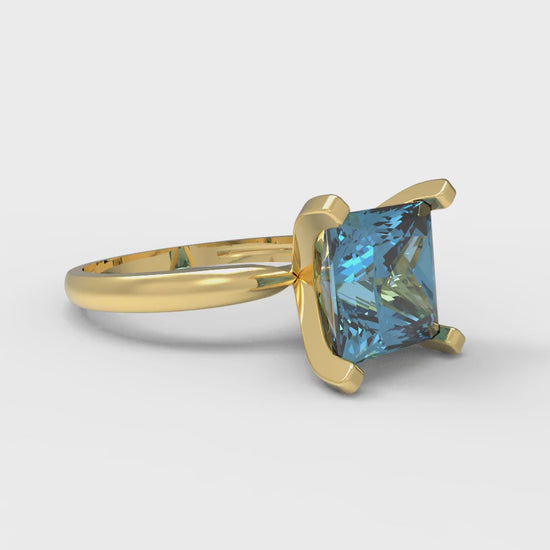 3 cttw Natural Aquamarine Solitaire Engagement Ring - Solid Gold (Princess Cut,8.0mm)