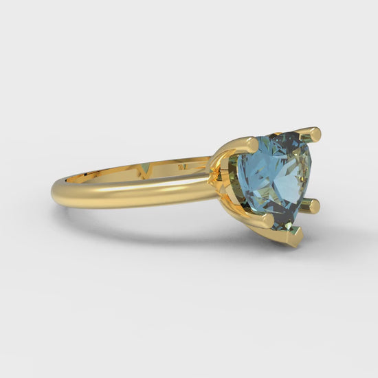 2 cttw Natural Aquamarine Solitaire Engagement Ring - Solid Gold (Heart Cut,8mm)