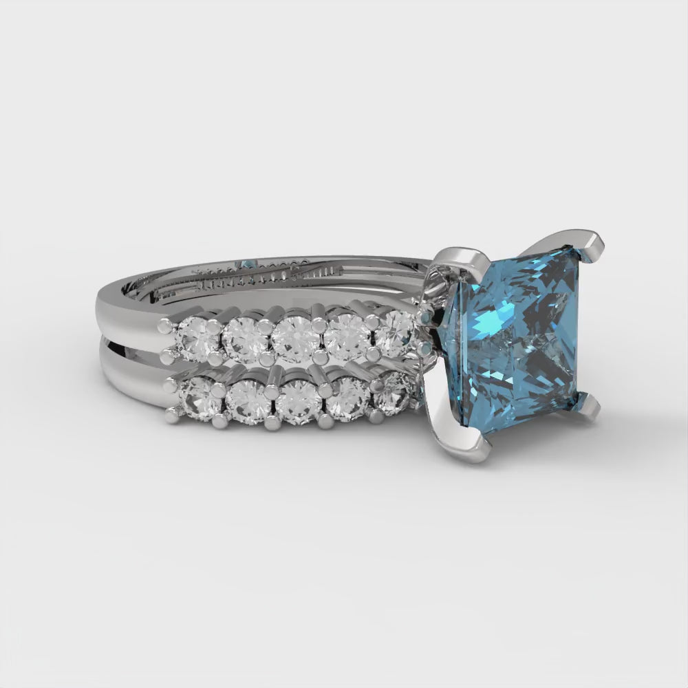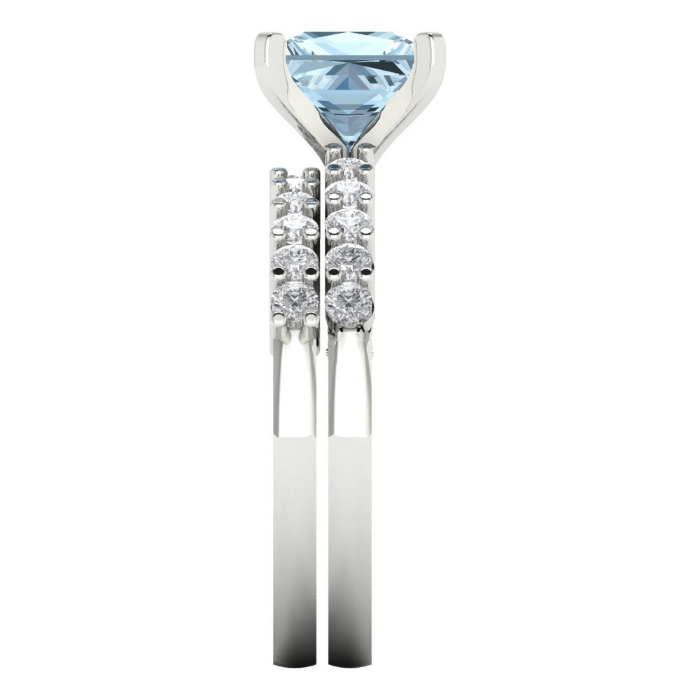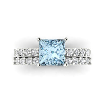 2.63 cttw Princess Cut Natural Aquamarine Bridal Set - Solid White Gold Engagement Ring & Wedding Band