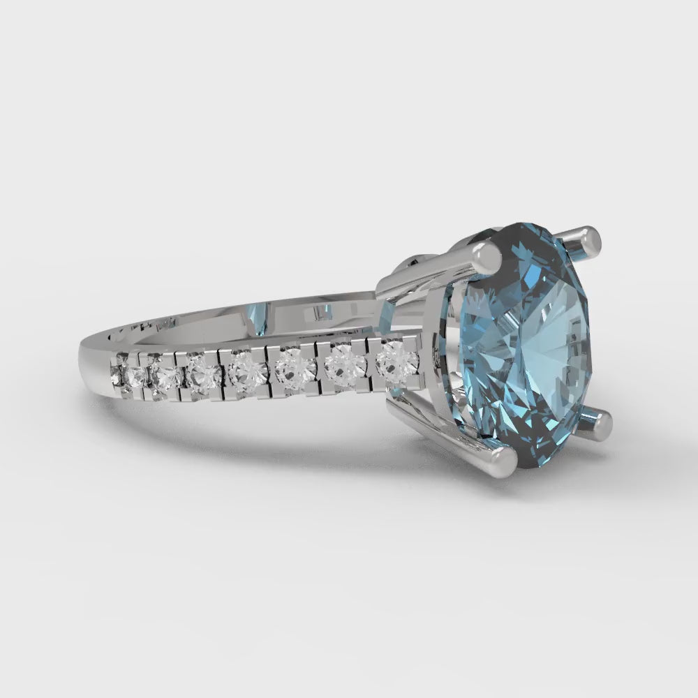 2.21 cttw Natural Aquamarine Solitaire with Zirconia Simulated Diamond Accents Engagement Ring - Solid Gold (Oval Cut,9X7mm)