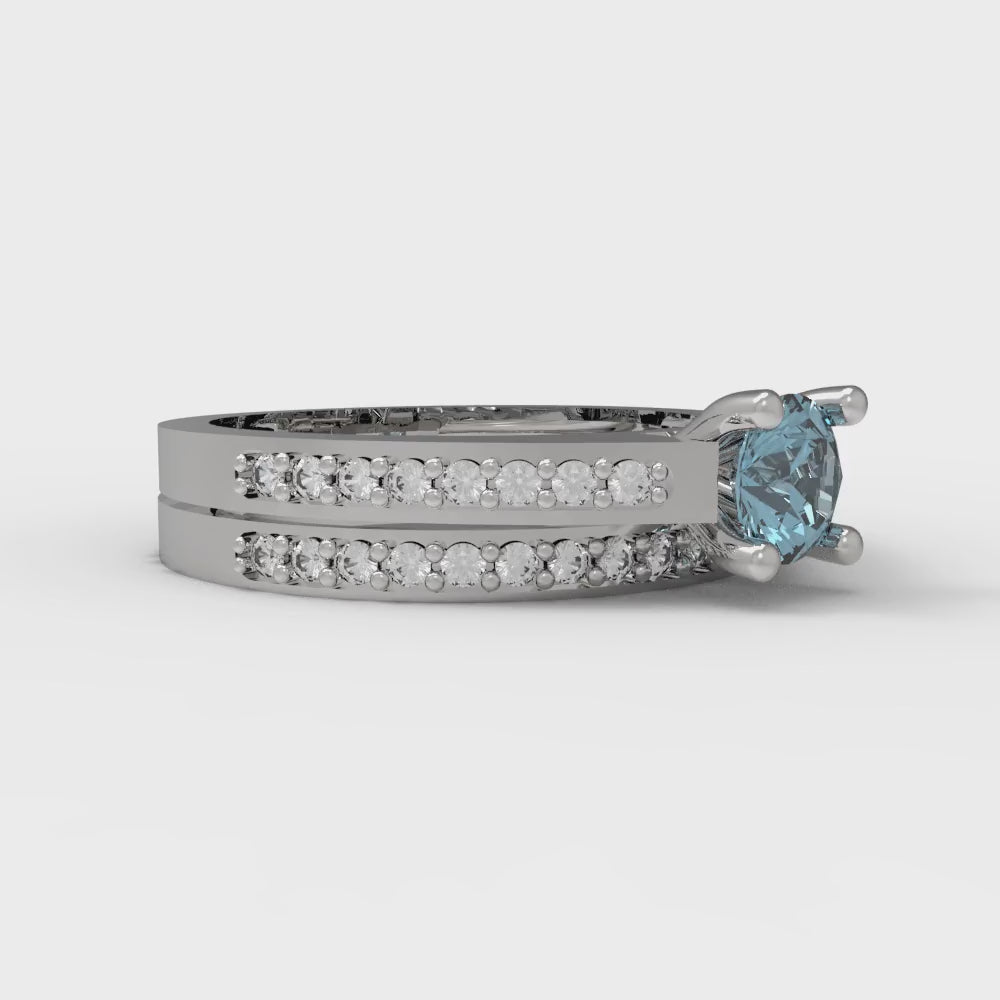 0.86 cttw Round Cut Natural Aquamarine Bridal Set - Solid White Gold Engagement Ring & Wedding Band