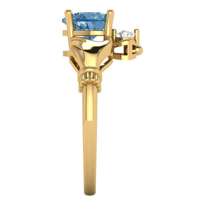 1.06 cttw Zirconia Simulated Blue Diamond Celtic Claddagh Engagement Ring - Solid Gold (VVS1, Heart Cut,6.5mm)