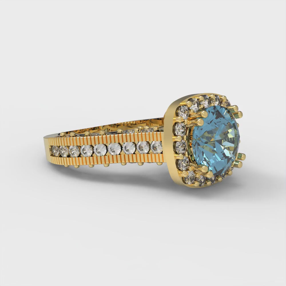 2.37 cttw Zirconia Simulated Blue Diamond Hidden Halo Engagement Ring - Solid Gold (VVS1, Round Cut,7.5mm)