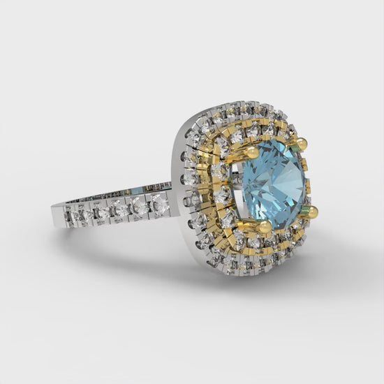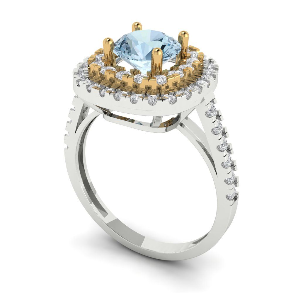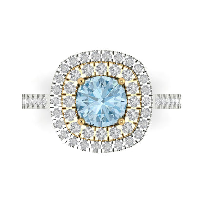 1.615 cttw Zirconia Simulated Blue Diamond Hidden Halo Engagement Ring - Solid Gold (VVS1, Round Cut,6.5mm)