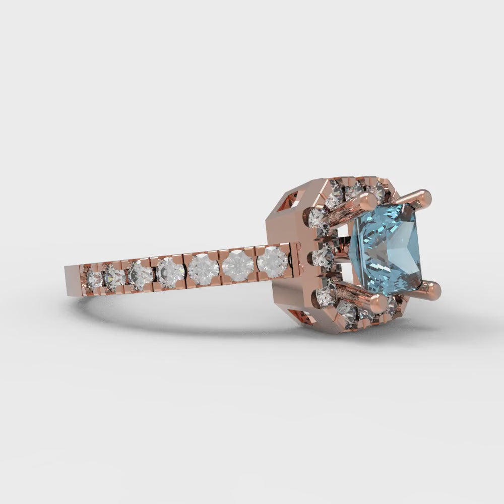 0.89 cttw Zirconia Simulated Blue Diamond Hidden Halo Engagement Ring - Solid Gold (VVS1, Princess Cut,4.5mm)