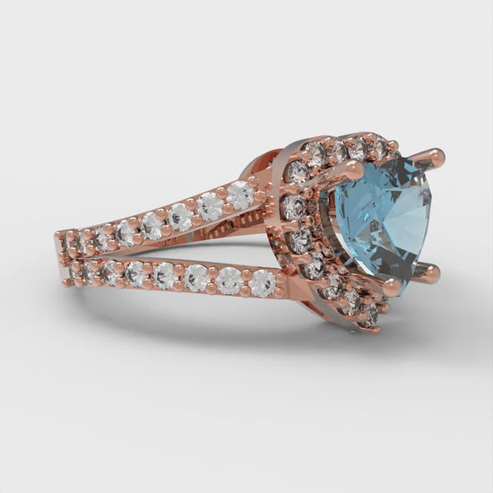 1.49 cttw Zirconia Simulated Blue Diamond Hidden Halo Engagement Ring - Solid Gold (VVS1, Heart Cut,6.5mm)