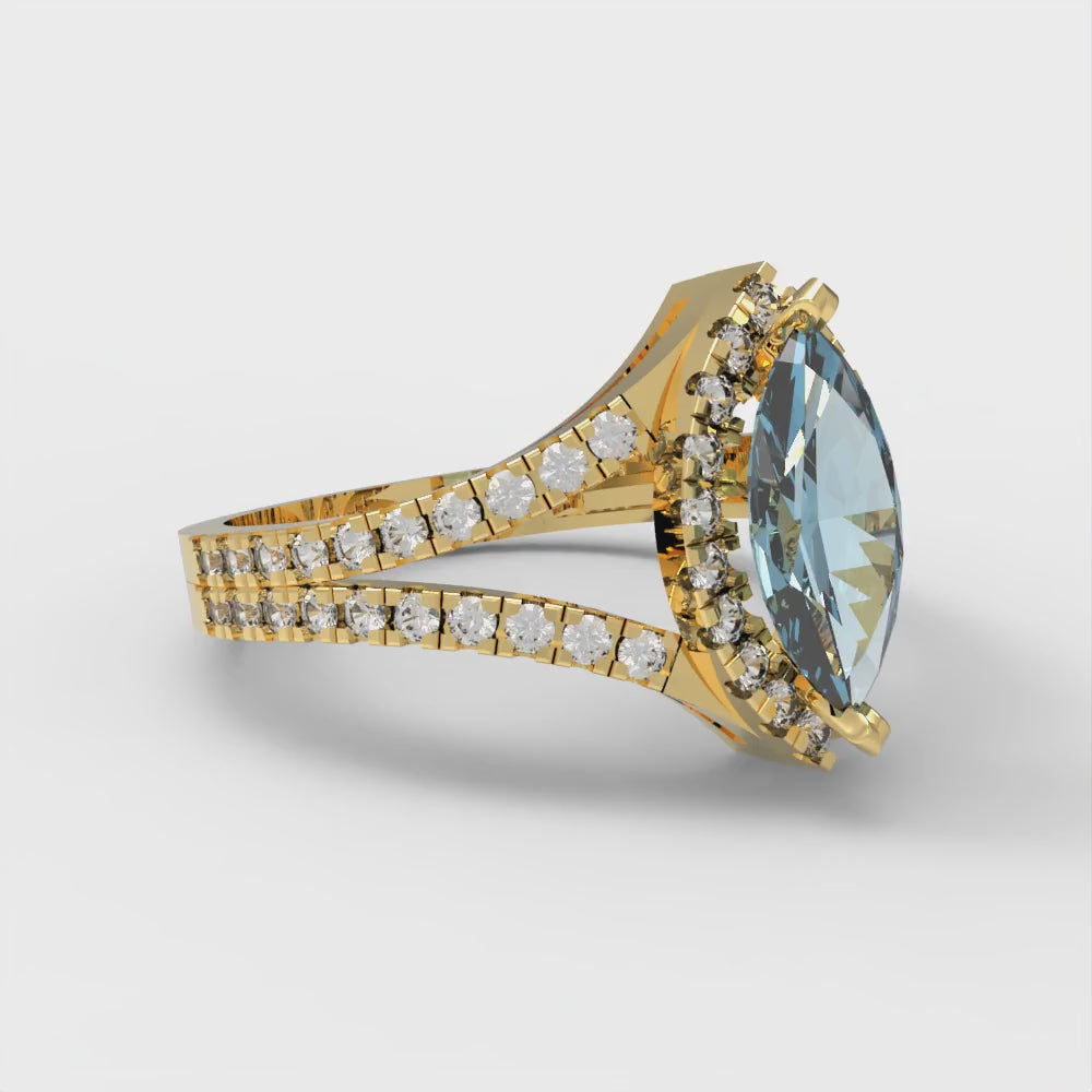 1.2 cttw Zirconia Simulated Blue Diamond Hidden Halo Engagement Ring - Solid Gold (VVS1, Marquise Cut,9x4.5mm)