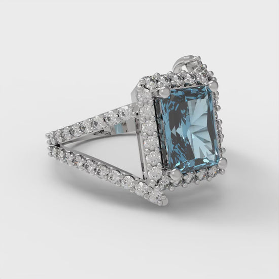 1.935 cttw Zirconia Simulated Blue Diamond Hidden Halo Engagement Ring - Solid Gold (VVS1, Emerald Cut,7.5x5.5mm)