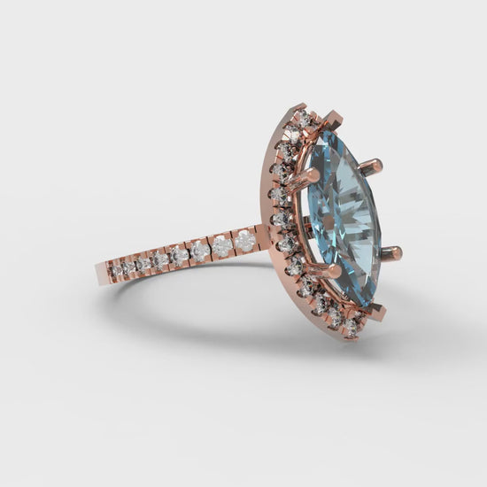 2.38 cttw Zirconia Simulated Blue Diamond Hidden Halo Engagement Ring - Solid Gold (VVS1, Marquise Cut,12x6mm )