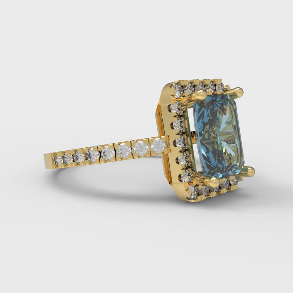 1.86 cttw Zirconia Simulated Blue Diamond Hidden Halo Engagement Ring - Solid Gold (VVS1, Emerald Cut,7.5x5.5mm)
