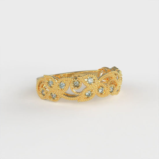 0.17 cttw Blue Moissanite Round Cut Yellow Gold Eternity Wedding Band