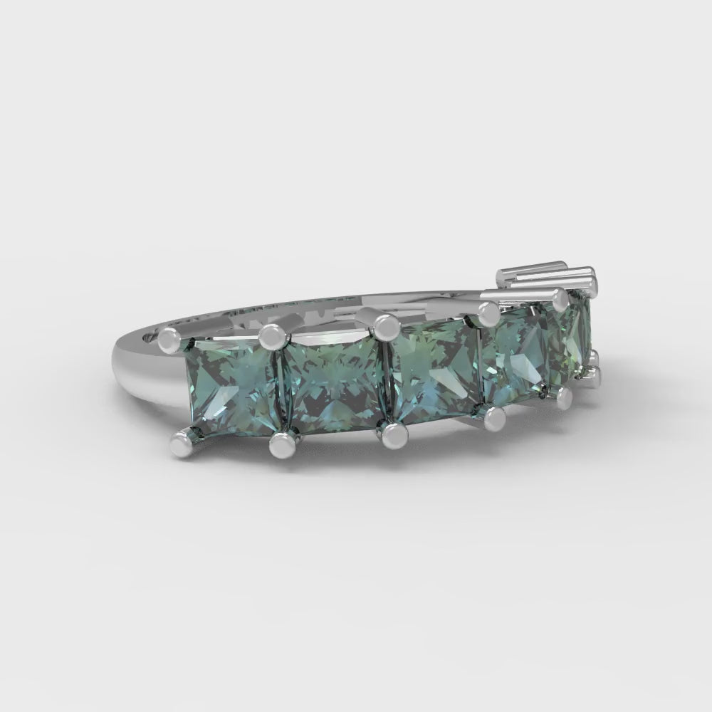 1.75 cttw Blue Moissanite Princess Cut White Gold Eternity Wedding Band