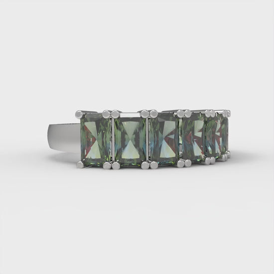 2.61 cttw Blue Moissanite Emerald Cut White Gold Eternity Wedding Band
