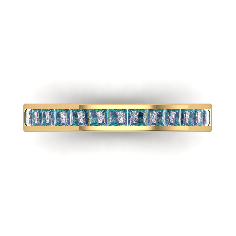 0.78 cttw Blue Moissanite Princess Cut Yellow Gold Eternity Wedding Band