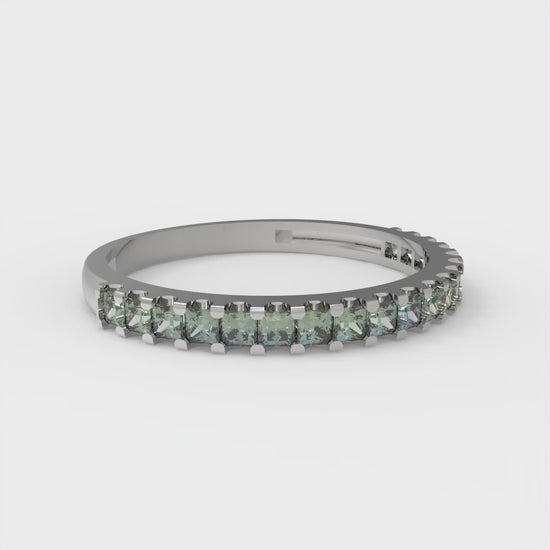0.285 cttw Blue Moissanite Princess Cut White Gold Eternity Wedding Band