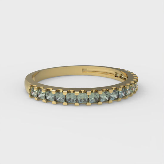 0.285 cttw Blue Moissanite Princess Cut Yellow Gold Eternity Wedding Band