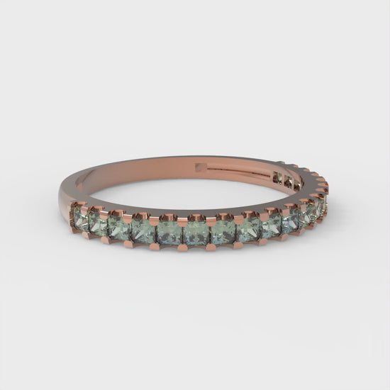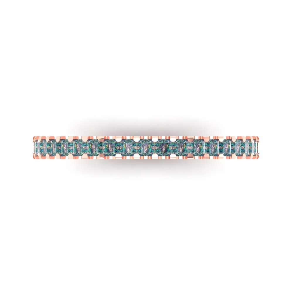 0.285 cttw Blue Moissanite Princess Cut Rose Gold Eternity Wedding Band