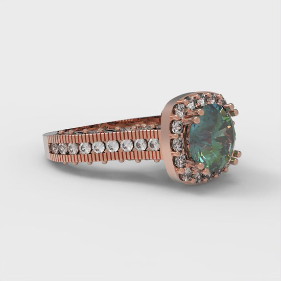 2.37 cttw Blue Moissanite Hidden Halo Engagement Ring - Solid Gold (Round Cut,7.5mm)