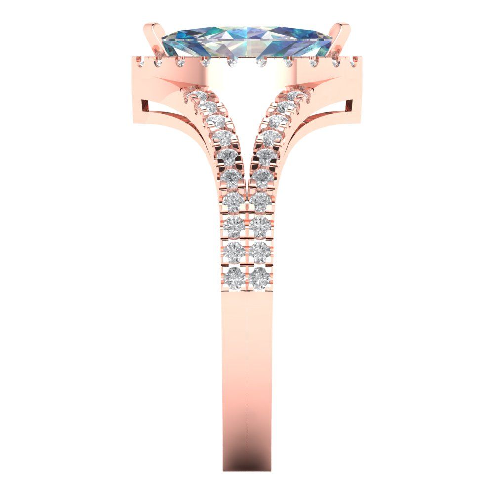 1.2 cttw Blue Moissanite Hidden Halo Engagement Ring - Solid Gold (Marquise Cut,9x4.5mm)