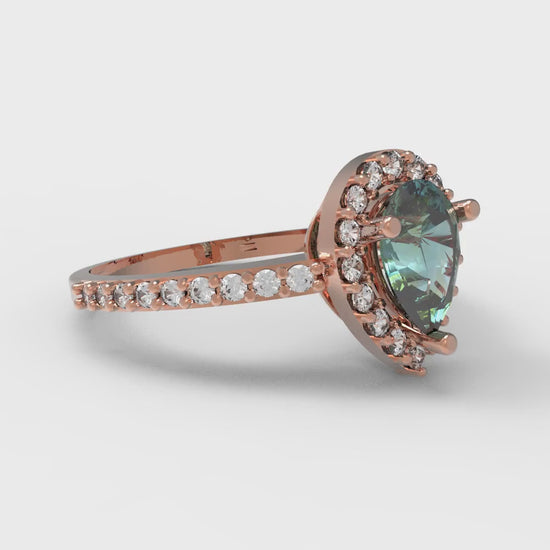 0.755 cttw Blue Moissanite Hidden Halo Engagement Ring - Solid Gold (Pear Cut,7x5mm )