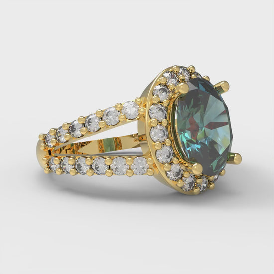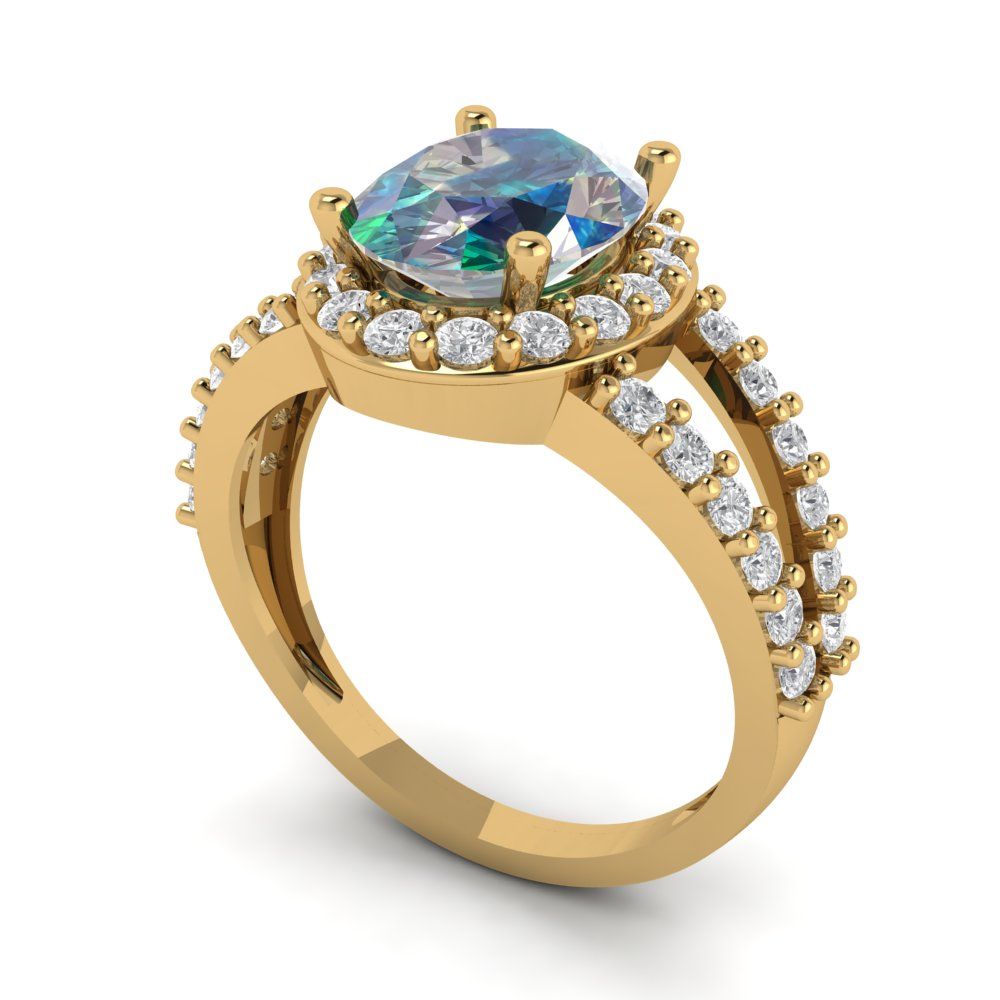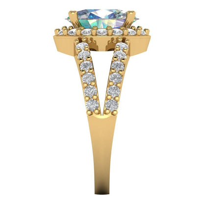 2.6 cttw Blue Moissanite Hidden Halo Engagement Ring - Solid Gold (Oval Cut,9x7mm)