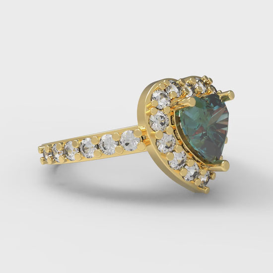 2.03 cttw Blue Moissanite Hidden Halo Engagement Ring - Solid Gold (Heart Cut,7.0mm)