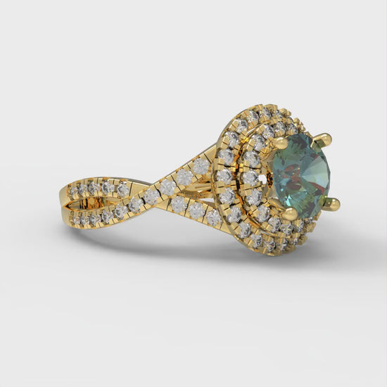1.3125 cttw Blue Moissanite Hidden Halo Engagement Ring - Solid Gold (Round Cut,6mm)