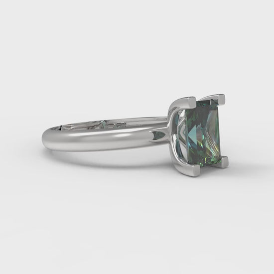 1 cttw Blue Moissanite Solitaire Engagement Ring - Solid Gold (Emerald Cut,7X5mm)