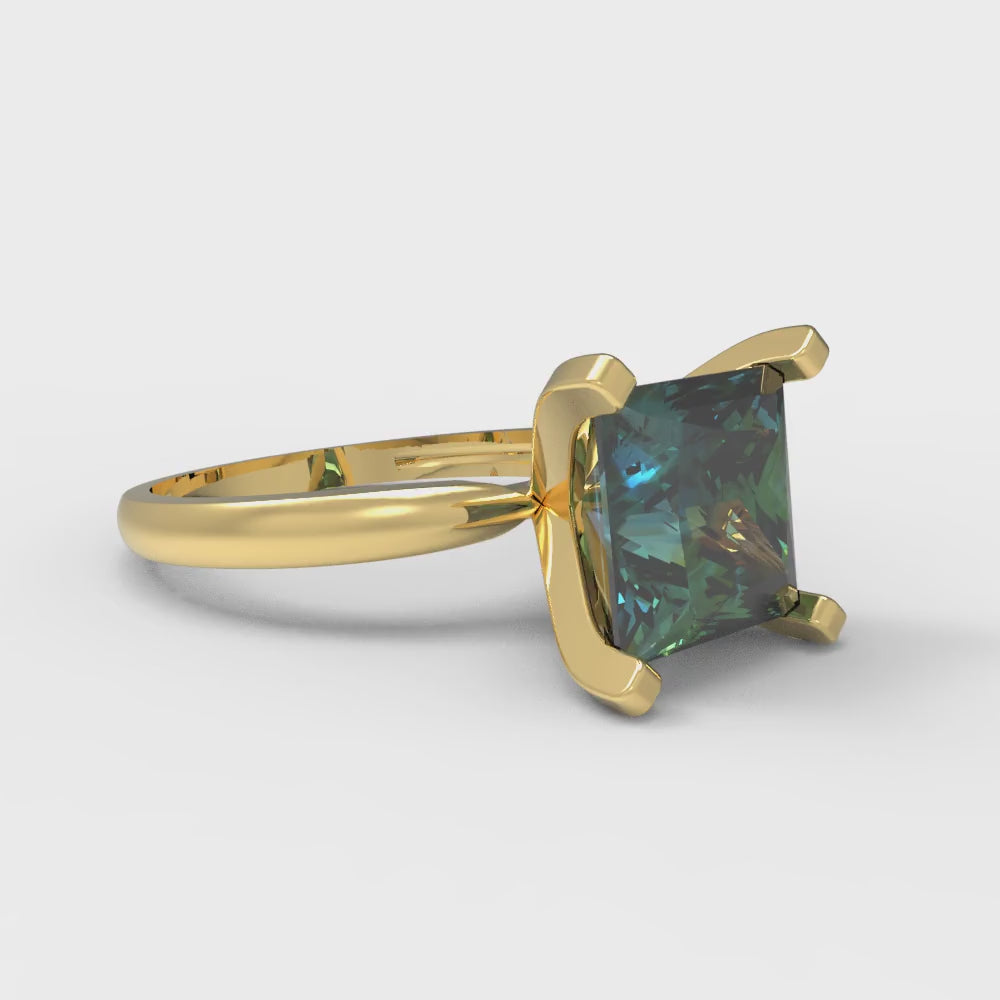 3 cttw Blue Moissanite Solitaire Engagement Ring - Solid Gold (Princess Cut,8.0mm)