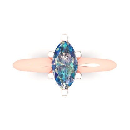 1 cttw Blue Moissanite Solitaire Engagement Ring - Solid Gold (Marquise Cut,10x5mm)