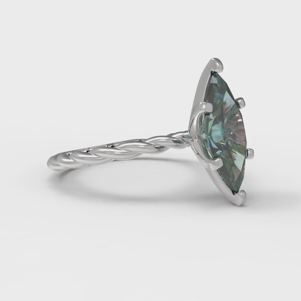 2 cttw Blue Moissanite Solitaire Engagement Ring - Solid Gold (Marquise Cut,12x6mm )