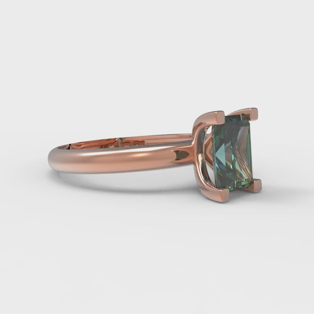 1 cttw Blue Moissanite Solitaire Engagement Ring - Solid Gold (Emerald Cut,7X5mm)