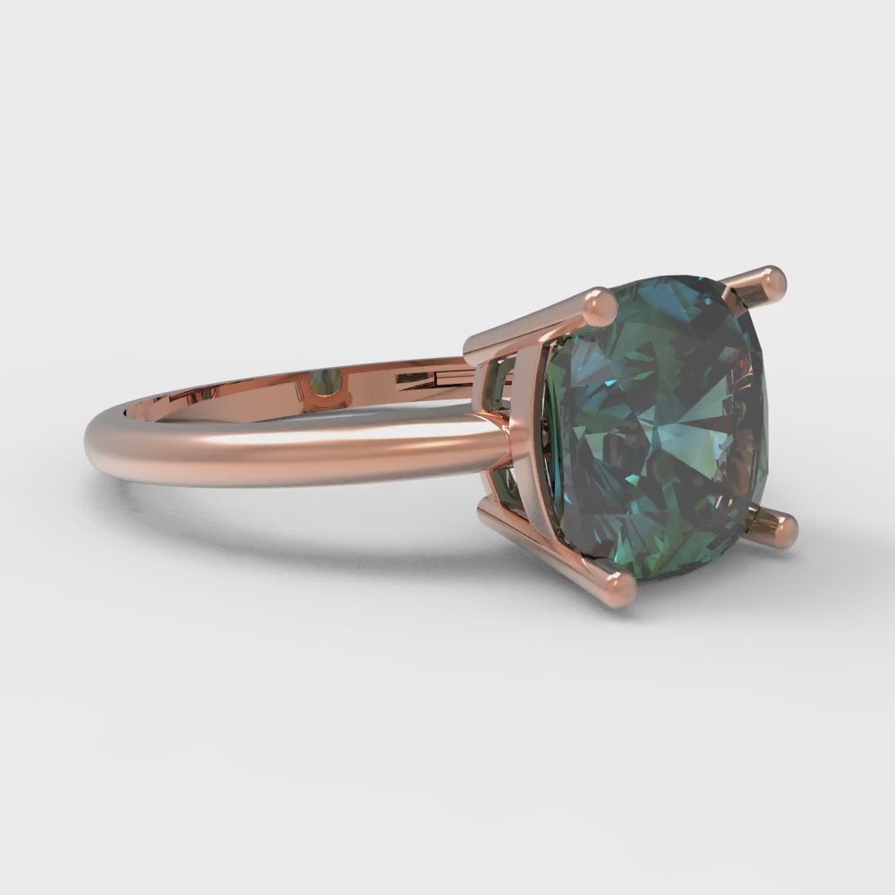 2.5 cttw Blue Moissanite Solitaire Engagement Ring - Solid Gold (Cushion Cut,8mm)