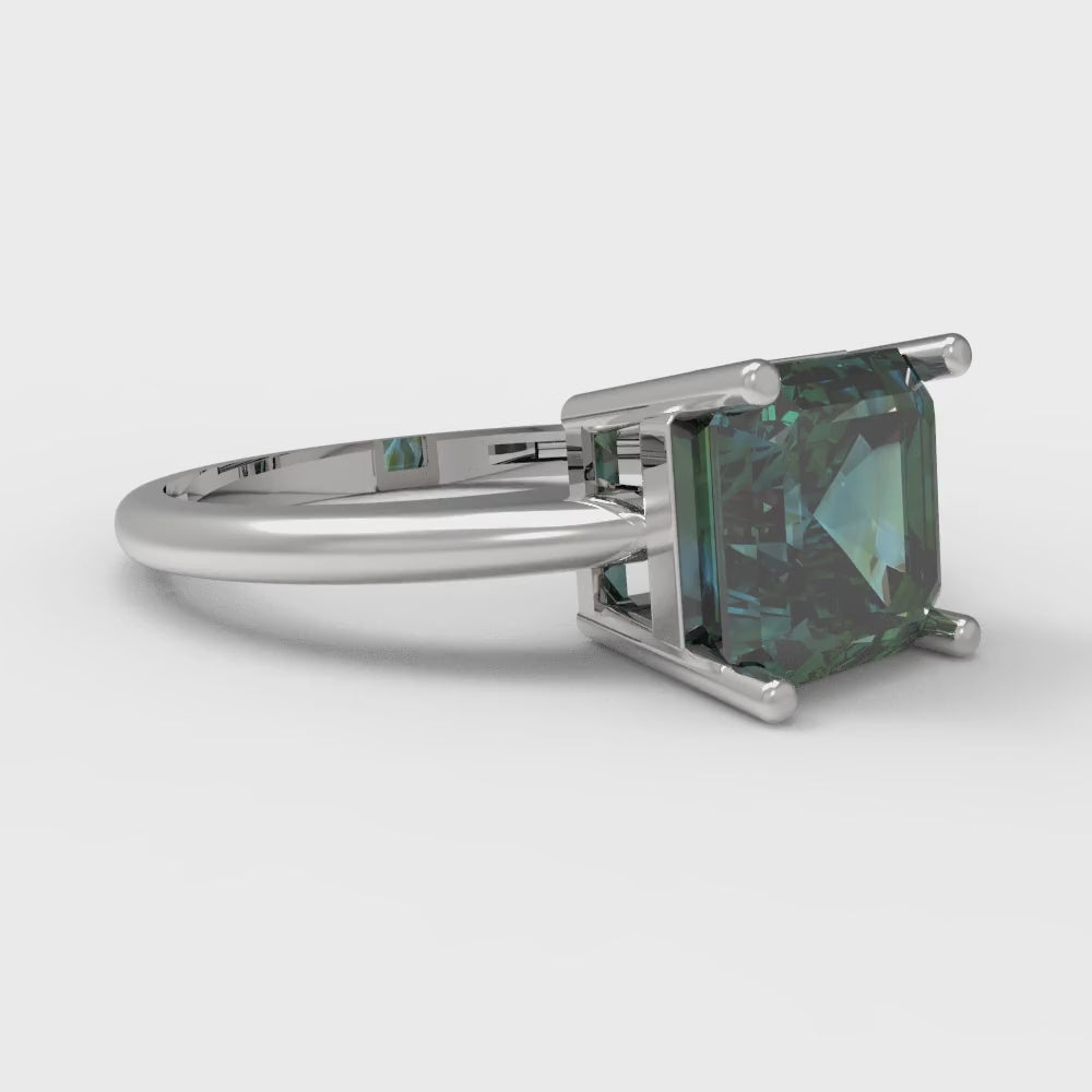 2 cttw Blue Moissanite Solitaire Engagement Ring - Solid Gold (Asscher Cut,7.0mm)