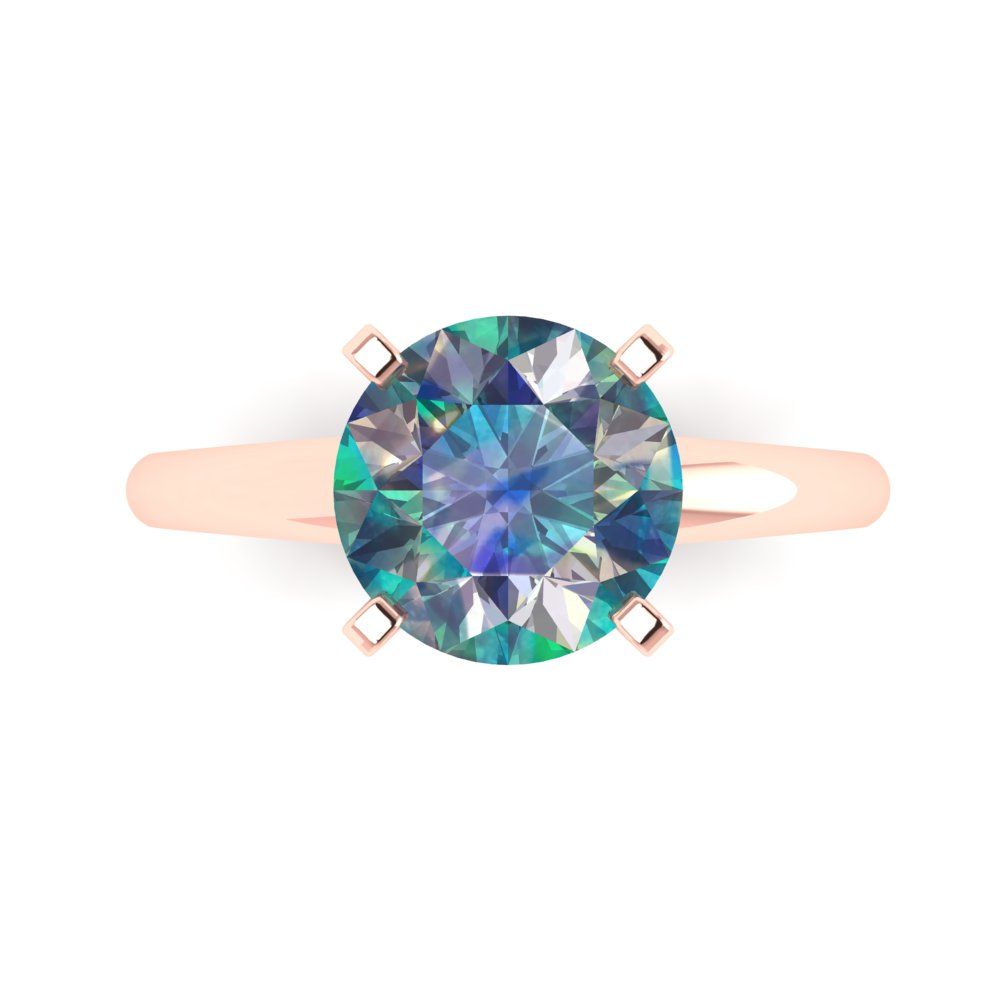 2.5 cttw Blue Moissanite Solitaire Engagement Ring - Solid Rose Gold (VVS1, Round Cut,8.5mm)