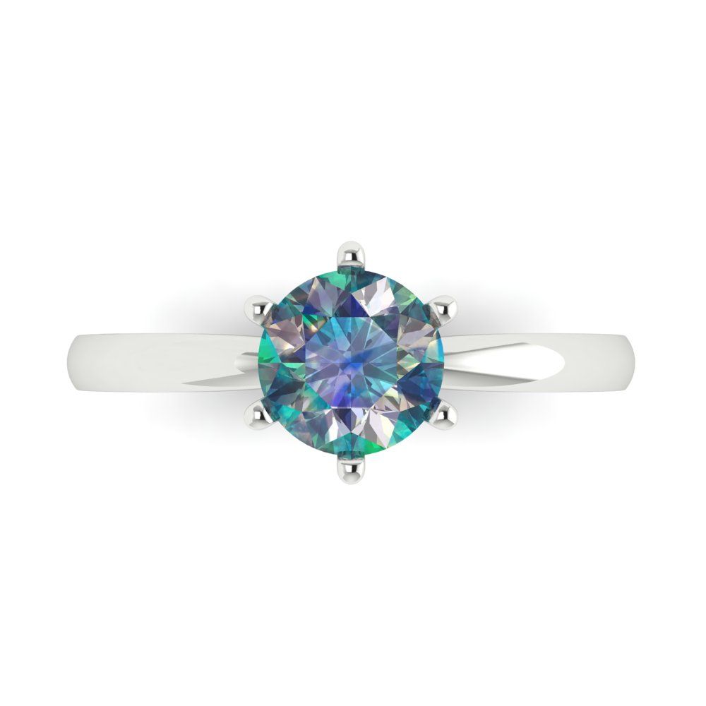 1 cttw Blue Moissanite Solitaire Engagement Ring - Solid Gold (Round Cut,6.5mm)