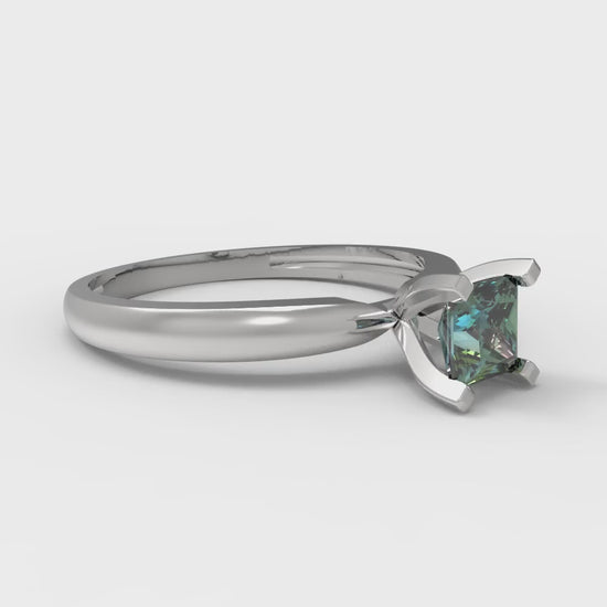 0.5 cttw Blue Moissanite Solitaire Engagement Ring - Solid Gold (Princess Cut,4.0mm)